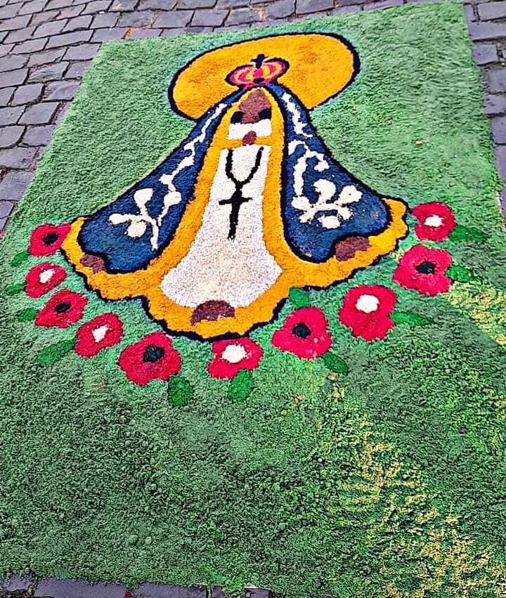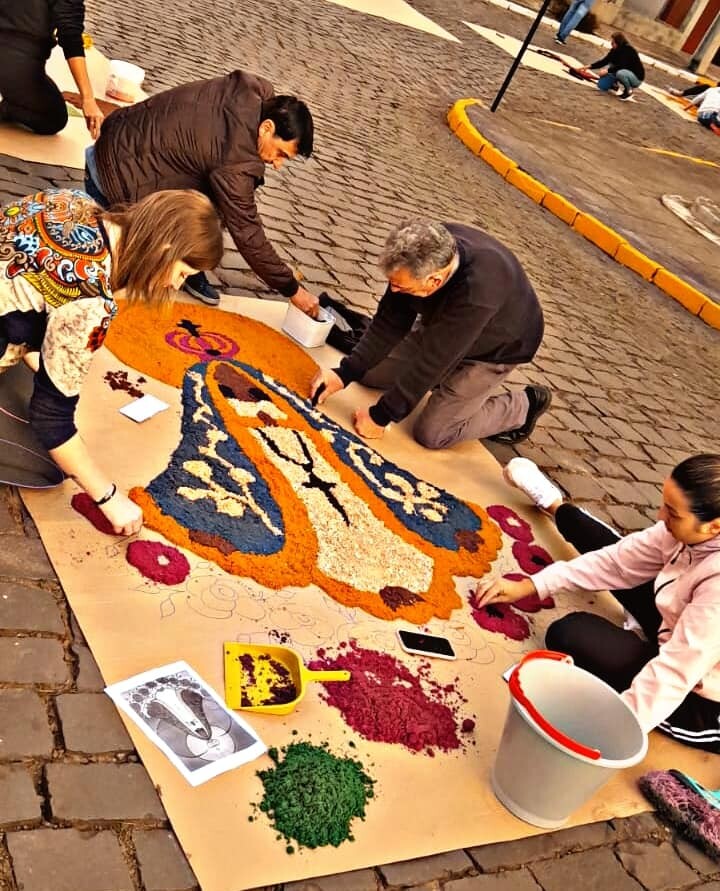 A prática consiste na confecção de representações de cenas bíblicas, objetos devocionais ou simples temas ornamentais sobre as ruas em que a procissão da Eucaristia passará. Os mais comuns são desenhos que fazem alusão à figura de Cristo, ao pão e ao cálice.