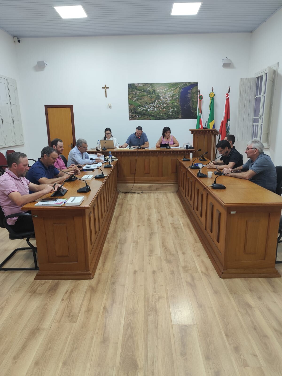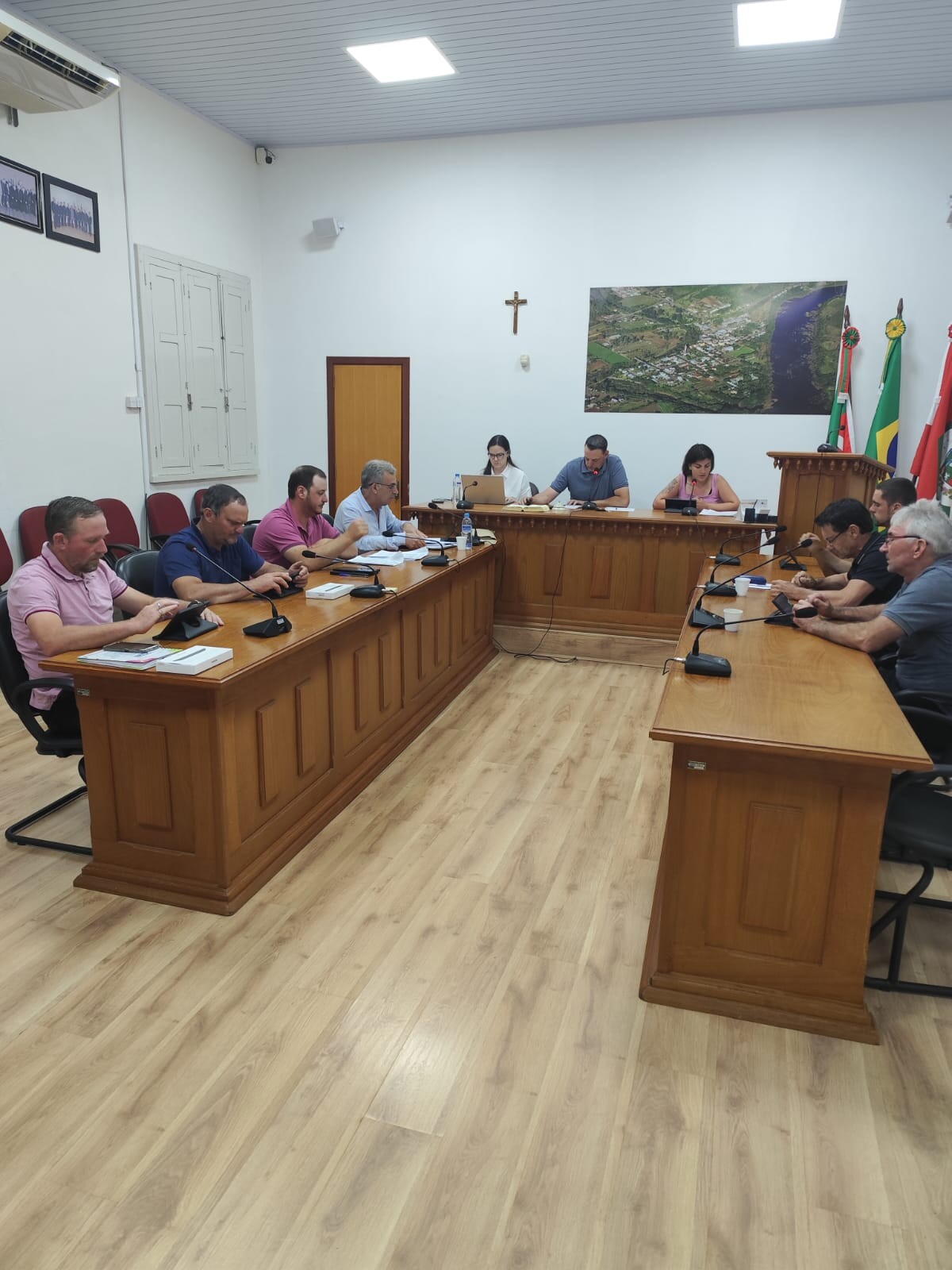 A primeira matéria discutida e aprovada pelos nobres Edis foi o Projeto de Lei Municipal n°1.806/2025, que estima a receita e fixa a despesa do Município de Santa Tereza para o exercício financeiro de 2026 em seguida o Projeto de Lei Municipal n°1.807/2025 que autoriza o Poder Executivo Municipal a firmar Termo de Convênio com a Fundação Vale do Taquari de Educação e Desenvolvimento Social – FUVATES, Projeto de Lei Municipal n°1.808/2025 que autoriza contratação temporária de excepcional interesse público e por fim o Projeto de Lei Legislativo n°006/2025 que institui o Dia da Bíblia no Município de Santa Tereza (RS) e dá outras providências.