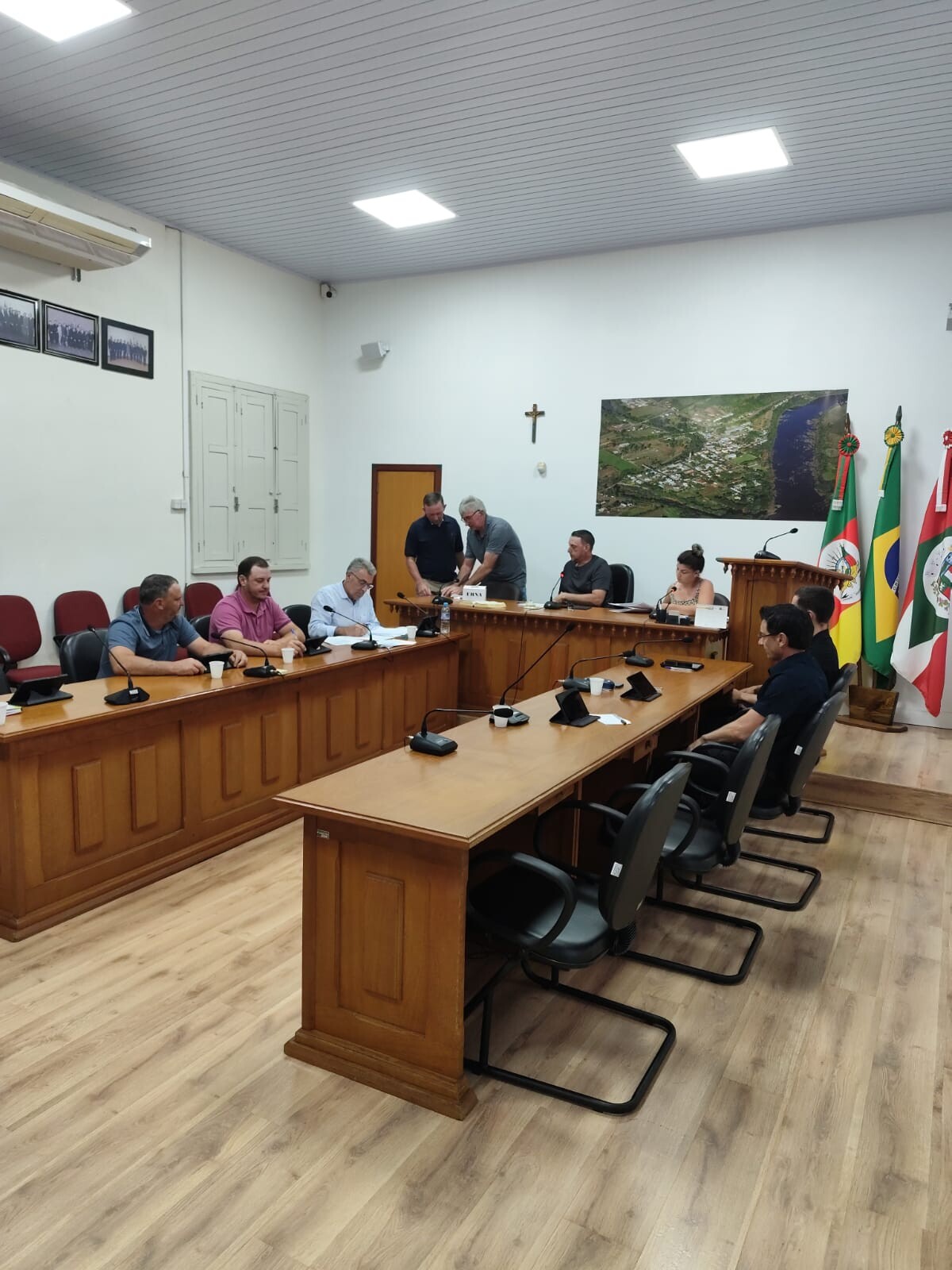 Foi definida como Presidente a Vereadora Laís de Oliveira Batisti, Vice-presidente Loiri Baldissera, 1°secretário Tiago Pilan e 2° secretário Sérgio Antônio Kotz, com 2 chapa participantes contabilizou-se cinco fotos para chapa um e quatro votos para chapa dois. Tivemos nesse dia também a escolha da comissão Geral de Pareceres de 2026 que ficou composta por Presidente Sérgio Antônio Kotz, Vice-presidente Loiri Baldissera , Relator Valdecir Lando, Relator Nei Paulo Bongiorno e Relator Tiago Pilan.