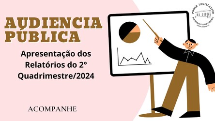 Nesta terça-feira (19), teremos Audiência Pública para a apresentação dos Relatórios da Saúde relativas ao 1° e 2° Quadrimestre/2024