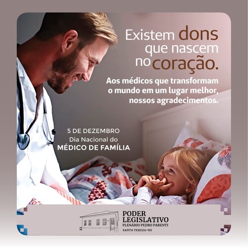 No dia 05 de dezembro a Câmara de Vereadores de Santa Tereza presta homenagem aos profissionais da saúde responsáveis pela prestação de cuidados primários aos pacientes: os médicos de família e comunidade.