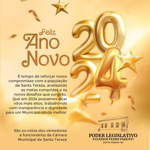 Desejamos a todos que 2024 chegue nos trazendo a serenidade necessária para dar continuidade aos nossos objetivos de, juntos, reconstruirmos a nossa comunidade, mantendo assim, a esperança de dias melhores nos corações de todos. Feliz ano novo!