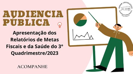 Câmara Municipal realiza nesta quarta-feira (28), apresentação dos Relatórios de Metas Fiscais e de Saúde relativas ao 3° Quadrimestre/2023