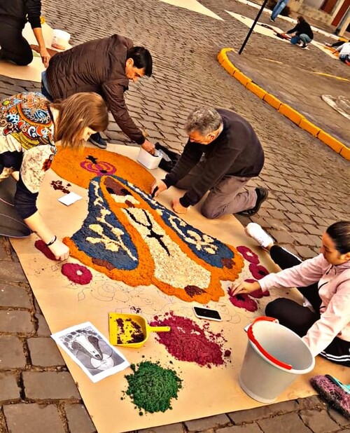 Vereadores se reuniram para participarem da confecção de tapetes para prestigiar o feriado de Corpus Christi.