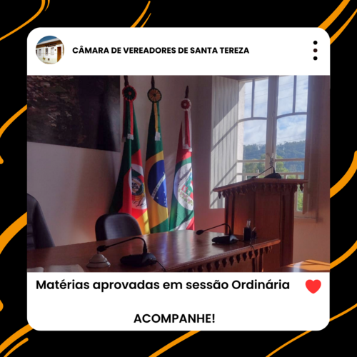 Na terça-feira, 29 de agosto, a Câmara Municipal de Santa Tereza realizou Sessão Ordinária. Em pauta, cinco Projetos de Lei de origem do Poder Executivo, uma Emenda à Lei Orgânica, de autoria do Poder Legislativo, uma Moção de Apoio e uma Indicação.