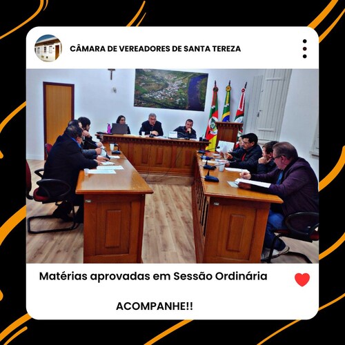 Seis projetos de lei, de origem do Poder Executivo foram aprovados pelos vereadores na noite da terça-feira, 08 de agosto na Câmara Municipal de Santa Tereza.