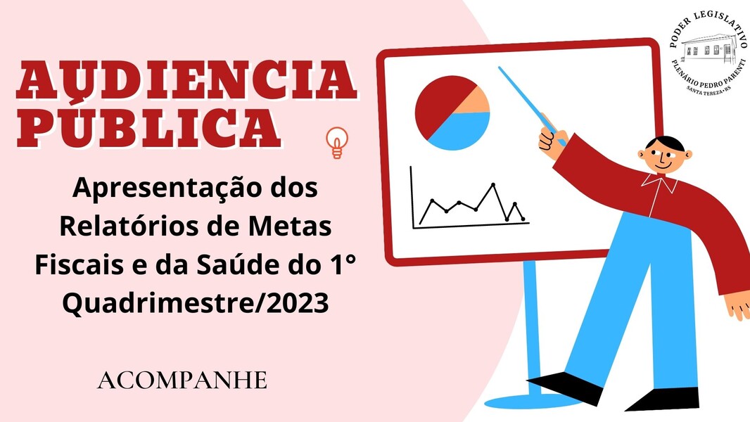Teremos a Apresentação dos Relatórios de Metas Fiscais e da Saúde do 1° Quadrimestre/2023, a realizar-se no dia 23 de maio de 2023 (terça-feira) ás 18h na sede do Legislativo.