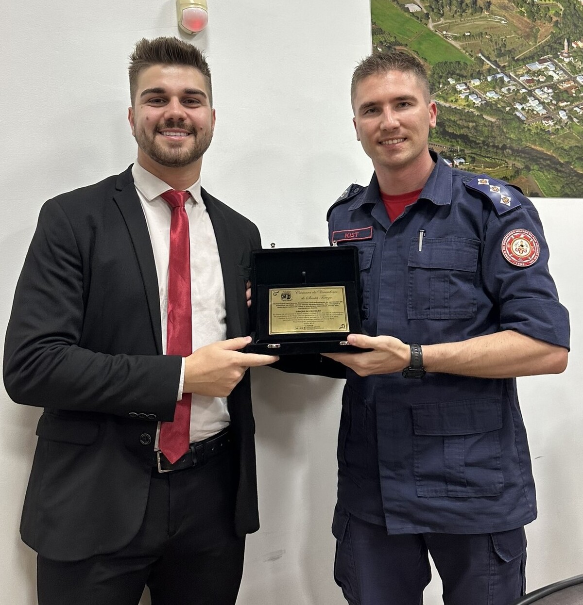 Na noite de quarta-feira, o Legislativo Municipal recebeu em sua sede, mais de quarenta e oito bombeiros, dentre eles estavam alunos soldados, Sargentos e o Capitão Gustavo Kist, o qual estava representando o Corpo de Bombeiros neste dia e recebendo também a honraria da noite.