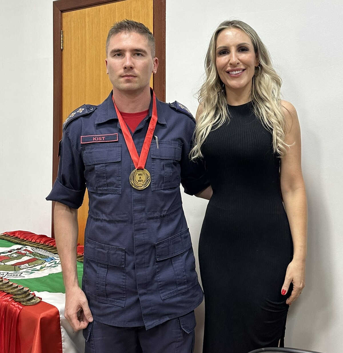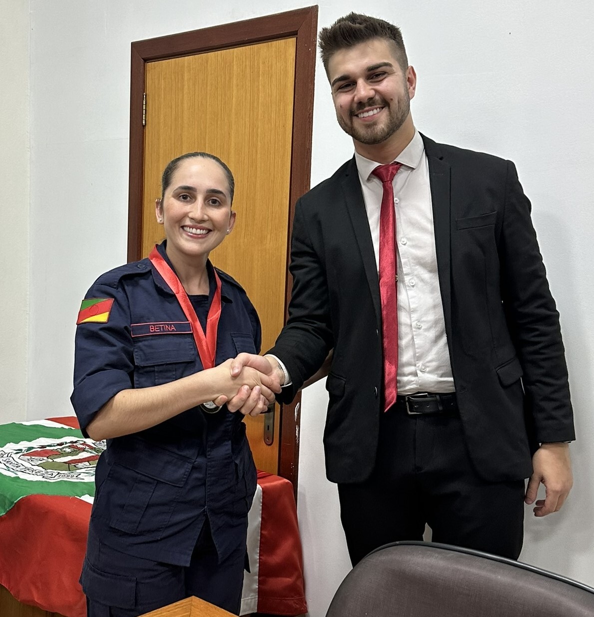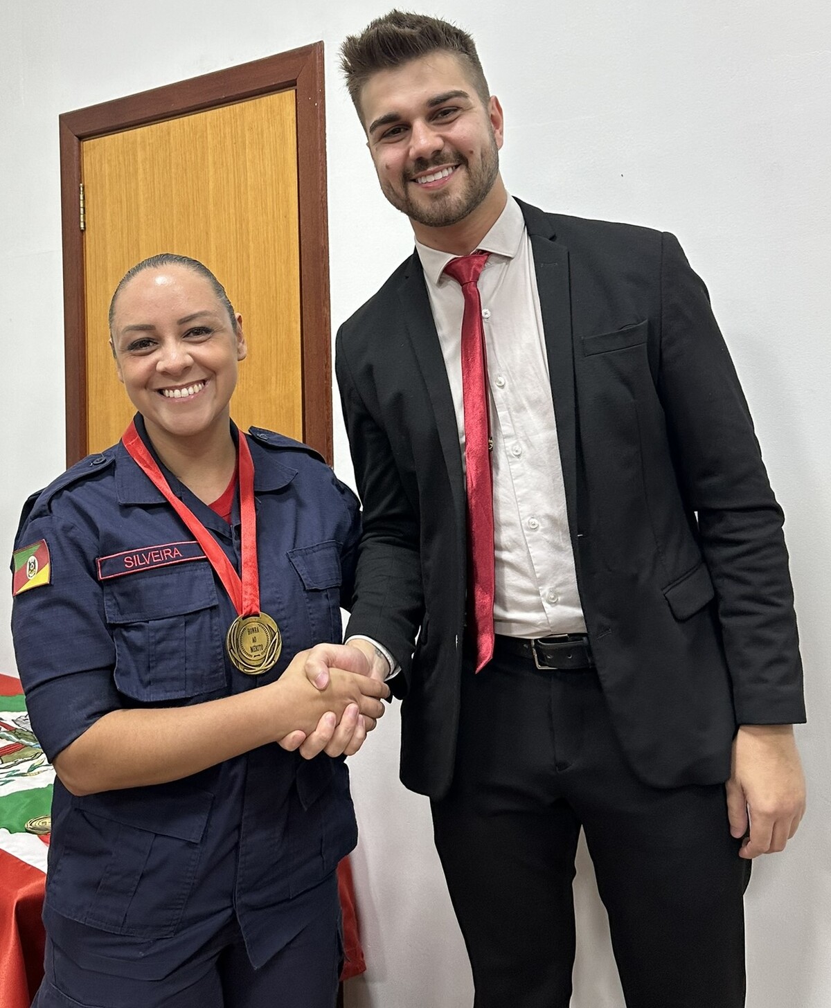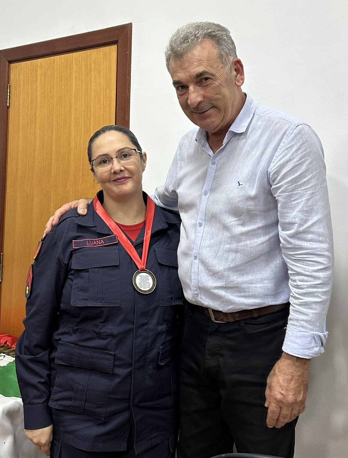 No final da cerimônia, foi entregue a cada bombeiro e a cada efetivo ali presente, uma medalha ao mérito, a qual foi entregue pelos nobres Vereadores e pela Prefeita Municipal presente nesta noite.