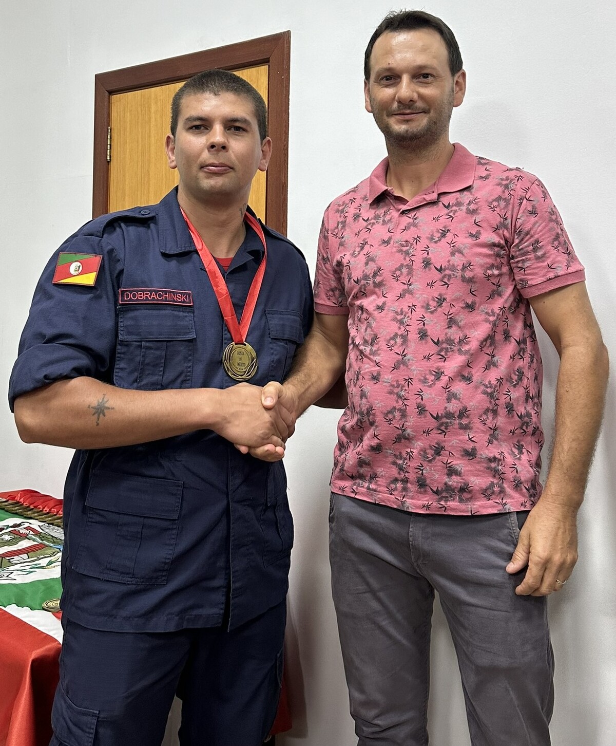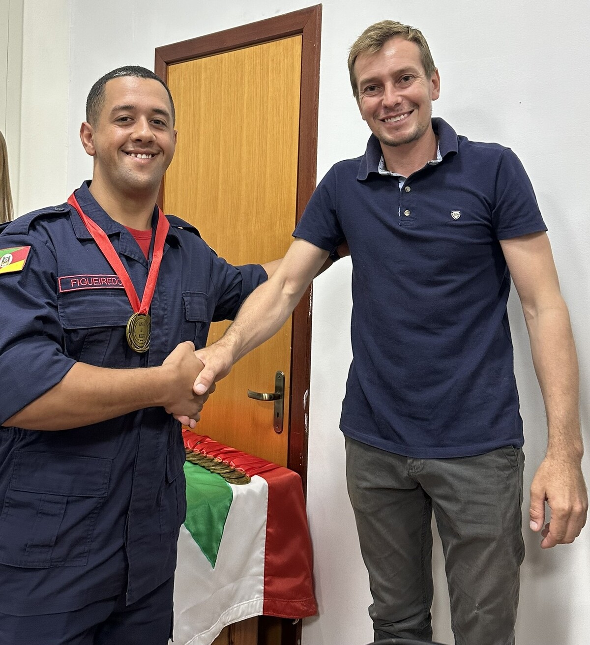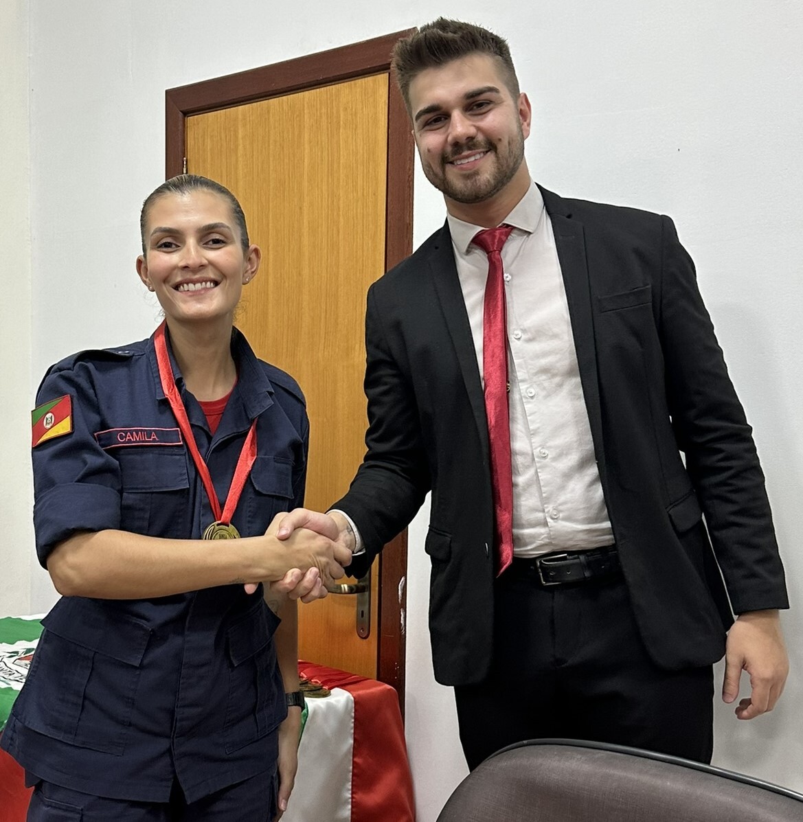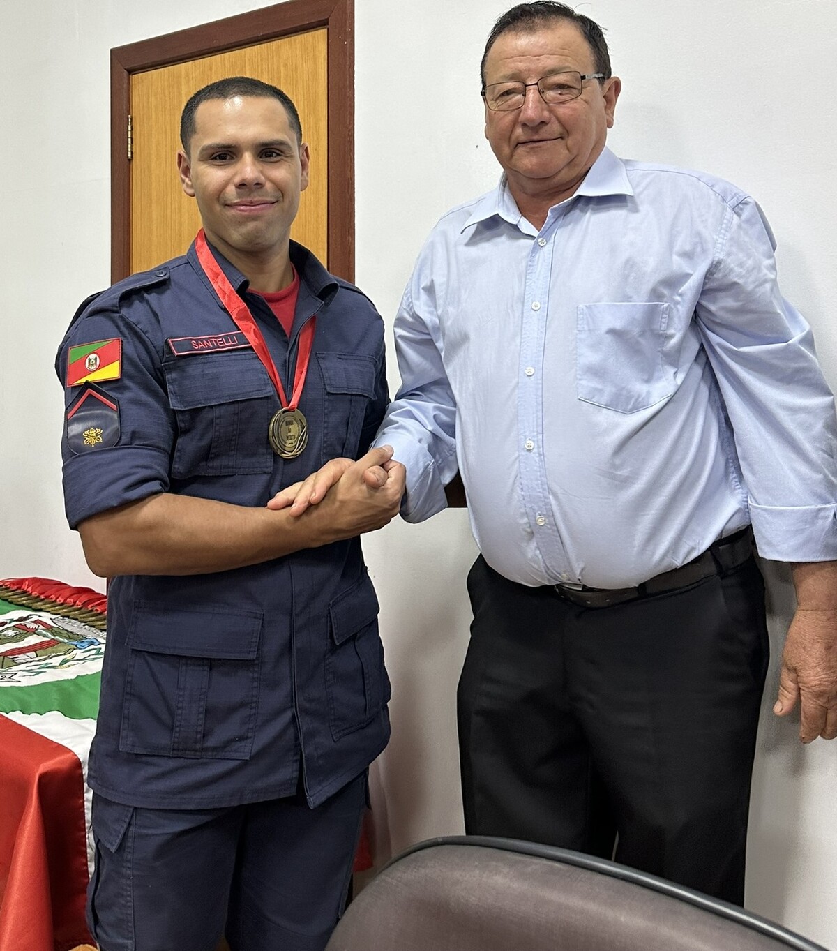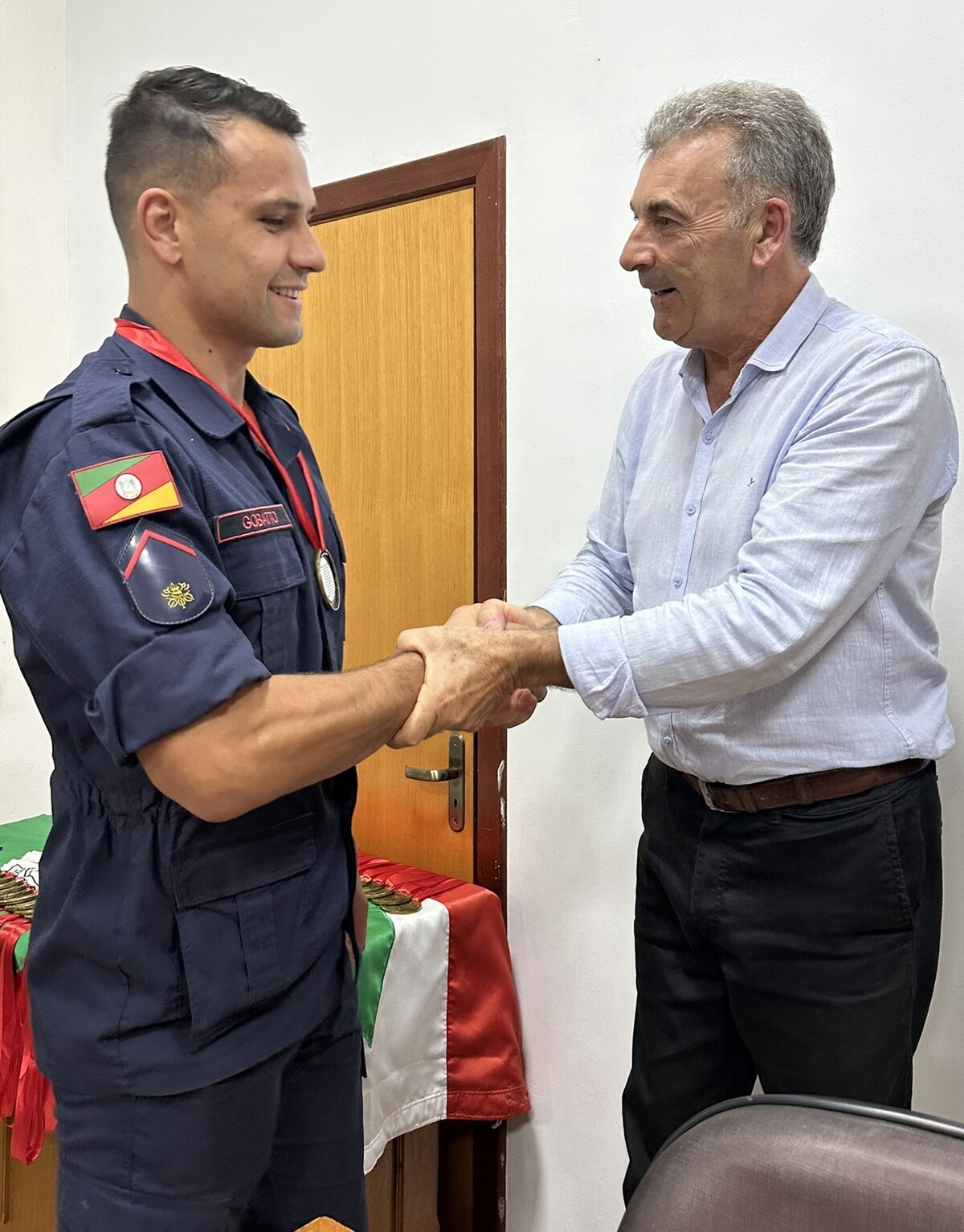 No final da cerimônia, foi entregue a cada bombeiro e a cada efetivo ali presente, uma medalha ao mérito, a qual foi entregue pelos nobres Vereadores e pela Prefeita Municipal presente nesta noite.