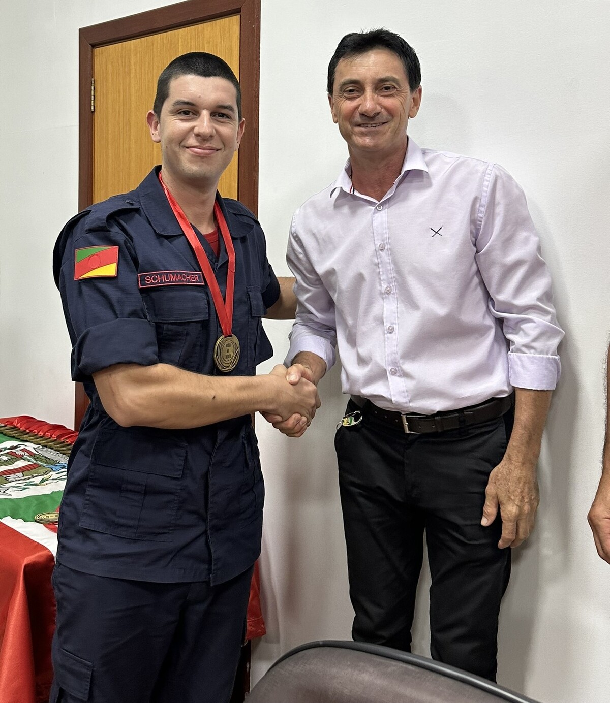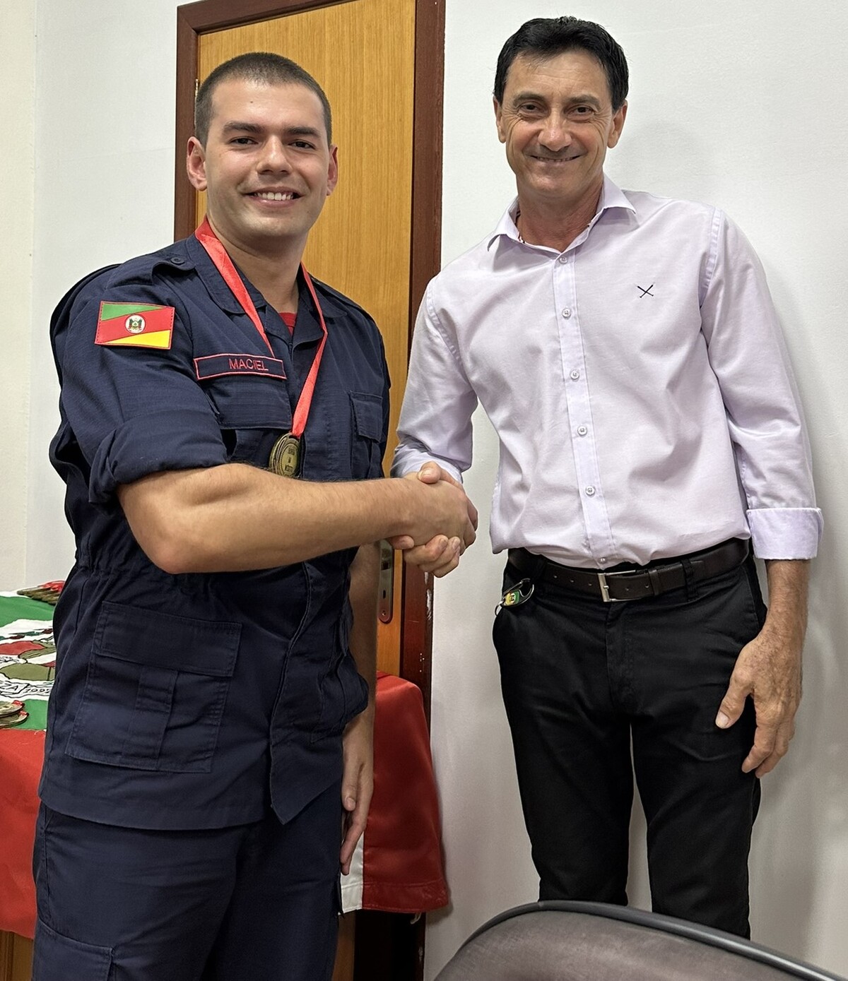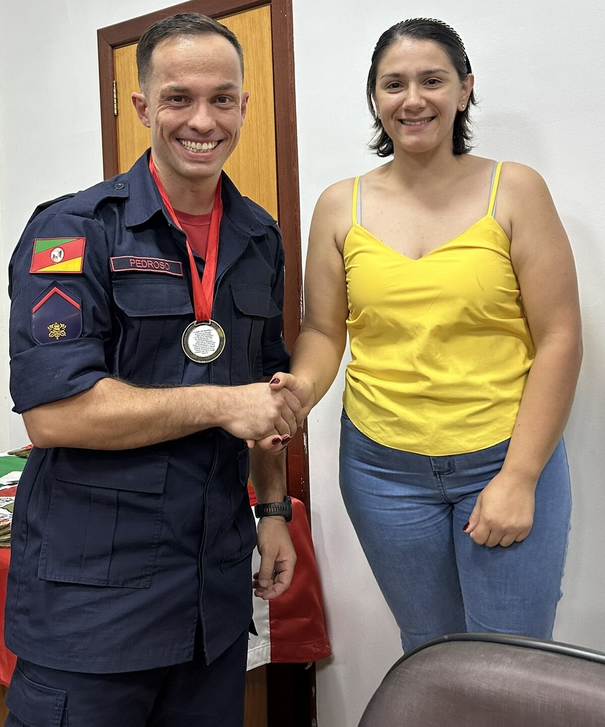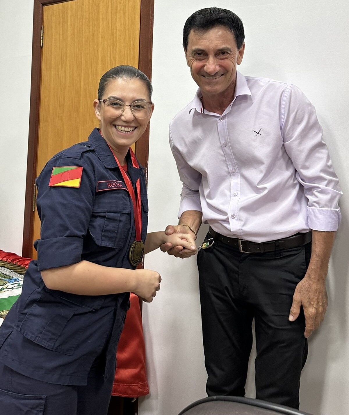 No final da cerimônia, foi entregue a cada bombeiro e a cada efetivo ali presente, uma medalha ao mérito, a qual foi entregue pelos nobres Vereadores e pela Prefeita Municipal presente nesta noite.