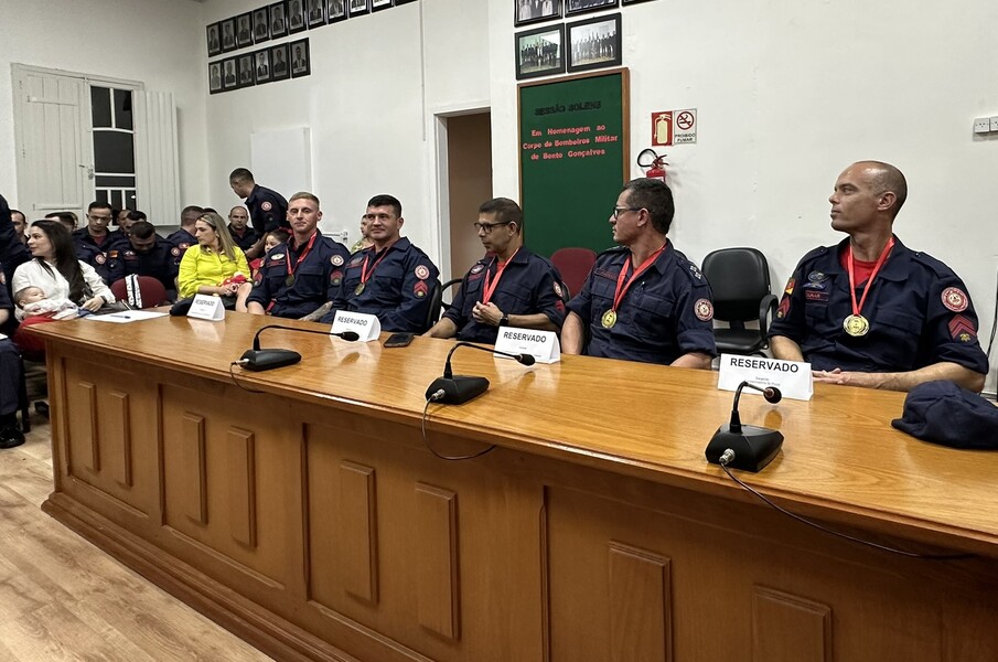 De iniciativa do Vereador Alencar Zaffari, através do Requerimento n°004/2024, foi realizada a 1° Sessão Solene deste ano, para homenagear e prestigiar o Corpo de Bombeiros Militar de Bento Gonçalves, pelos trabalhos honrosos prestados ao nosso município nas catástrofes de 2023.