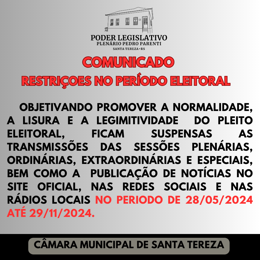 🔸A próxima Sessão Ordinária será realizada no dia 28 de maio de 2024, ás 19h na Câmara de Vereadores de Santa Tereza.
