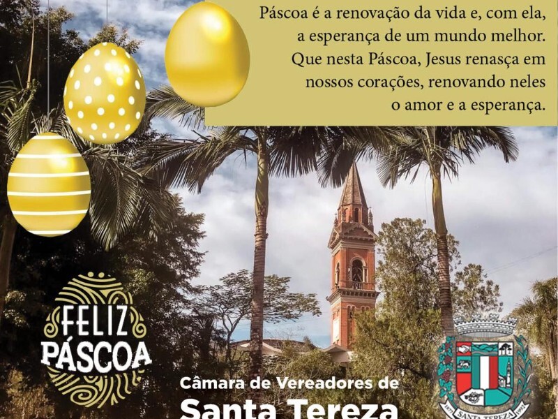 A Câmara de Vereadores de Santa Tereza deseja a todos uma abençoada e Feliz Páscoa!